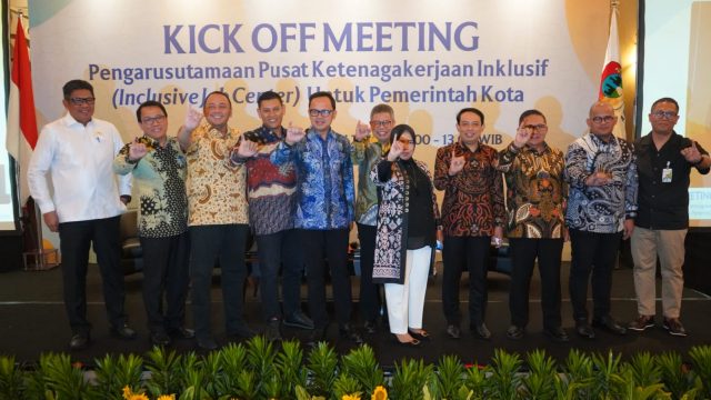 Jakarta – Asosiasi Pemerintah Kota Seluruh Indonesia (Apeksi) menggelar kick off meeting pengarusutamaan inclusive job center (IJC) dan inclusive labor market (ILM) untuk pemerintah kota di Hotel JS Luwansa, Jakarta Selatan, Rabu (18/1).