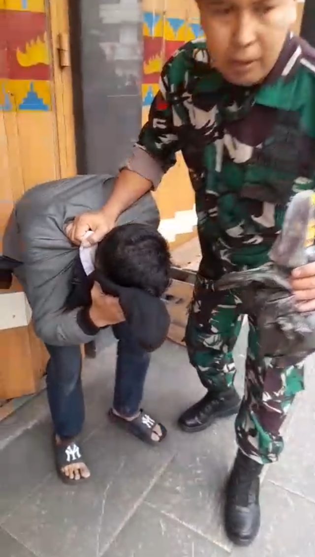Nampak raut wajah pelaku takut dan cemas saat ditangkap kedapatan membawa Bom molotov ditangkap Anggota TNI.