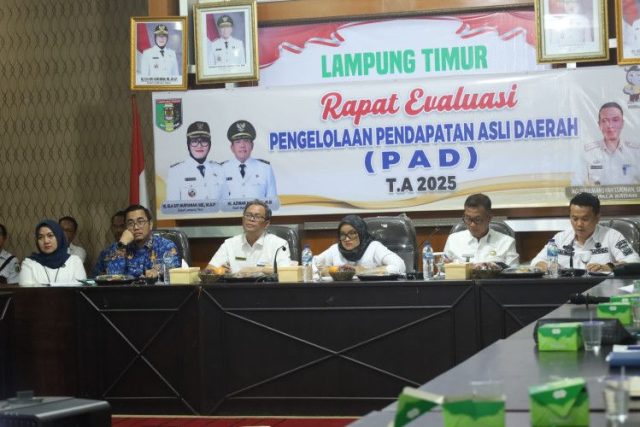 Daritadi.Com Lampung Timur – Pemerintah Kabupaten Lampung Timur melalui Badan Pendapatan Daerah (Bapenda) menggelar Rapat Evaluasi Pengelolaan Pendapatan Asli Daerah (PAD) Tahun Anggaran 2025, yang berlangsung di Aula Sekretariat Daerah Kabupaten Lampung Timur, Rabu (01/10/2025).