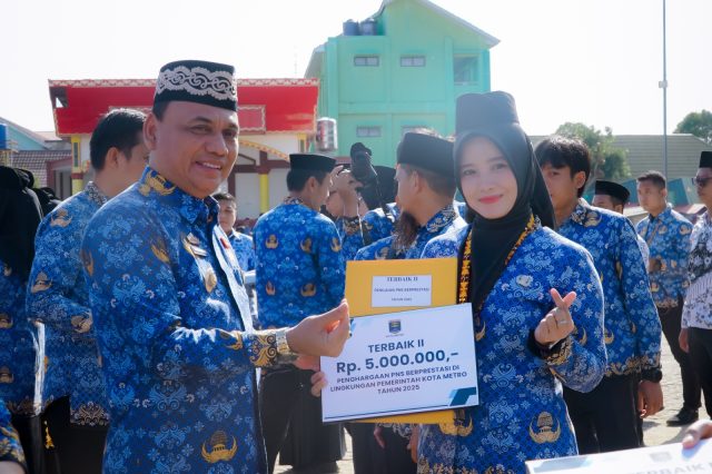 Berlangsung di Lapangan Samber Kota Metro, penghargaan tersebut diserahkan langsung oleh Wali Kota Metro Bambang Iman Santoso, S.Sos., M.Pd.I. Adapun penghargaan yang diterima Kabid Ekonomi Kreatif Lidanna Dian Kurnia, SE., MM. diantaranya Terbaik 2 Lomba ASN Berprestasi Kota Metro tahun 2025, Juara 2 Lampung Entertennis Piala Gubernur Tennis Beregu ASN se-Provinsi Lampung, dan Juara 2 ASN Metro Women’s Tennis Tournament Ganda Putri.