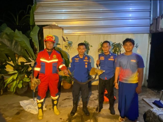 Petugas mengimbau masyarakat untuk tetap waspada saat terjadi genangan atau luapan air, karena kondisi tersebut berpotensi membuat hewan liar seperti ular keluar dari sarangnya dan masuk ke permukiman warga.