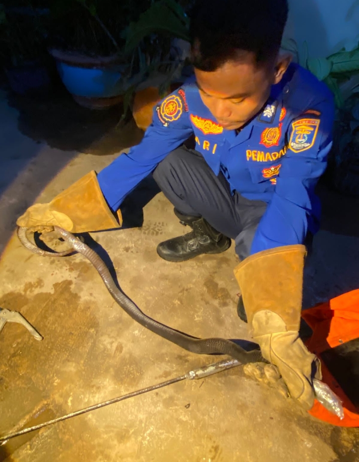 Dengan menggunakan peralatan khusus, petugas berhasil menangkap ular tersebut tanpa menimbulkan korban. Proses evakuasi berlangsung sekitar 30 menit dan disaksikan sejumlah warga sekitar.
