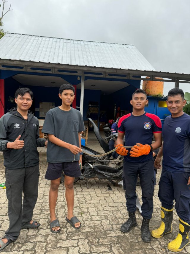 DARITADI.COM Metro – Tim Satuan Tugas (Satgas) Dinas Pemadam Kebakaran dan Penyelamatan Kota Metro berhasil mengevakuasi seekor ular yang masuk ke dalam sepeda motor milik warga, Guntur Ainur Rohman, dalam waktu kurang dari satu jam, Sabtu sore, 25/4/2026