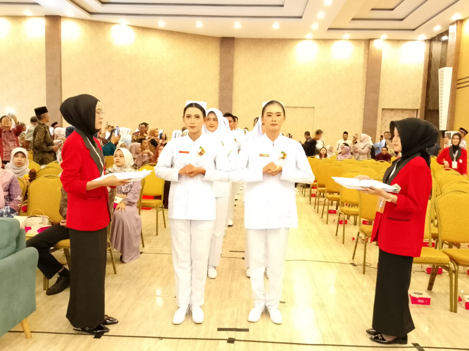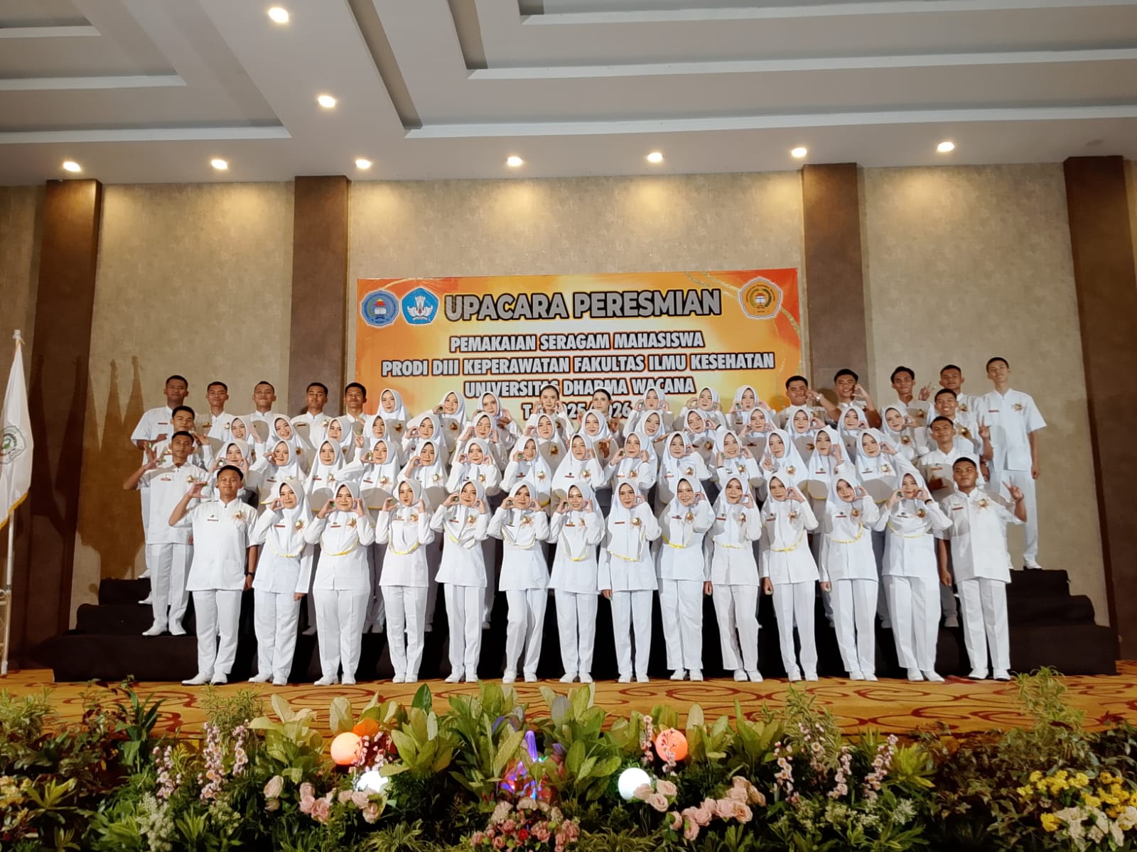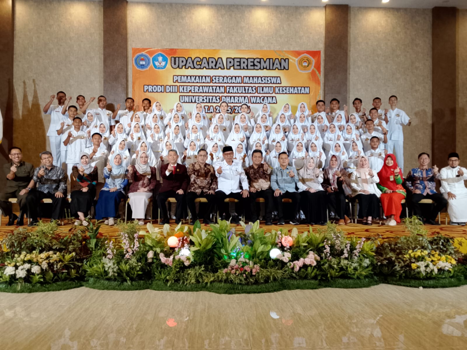 Daritadi Com Metro – Universitas Dharma Wacana Kota Metro menggelar upacara peresmian pemakaian seragam bagi 64 mahasiswa Program Studi D3 Keperawatan Tahun Akademik 2025–2026 di Hotel Aidea Grande, Rabu (29/4).
